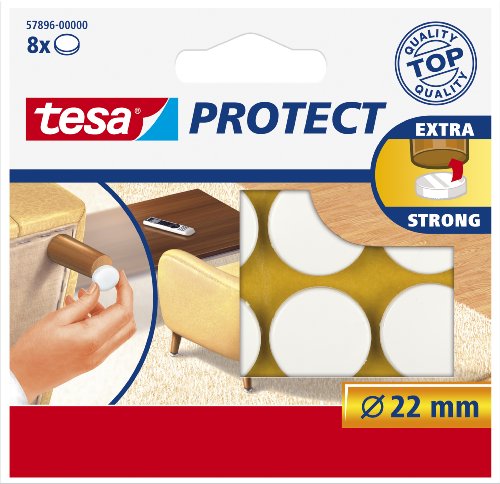 Tesa Self Adhesive Carpet Gliders, Round 22 Mm Dia, White